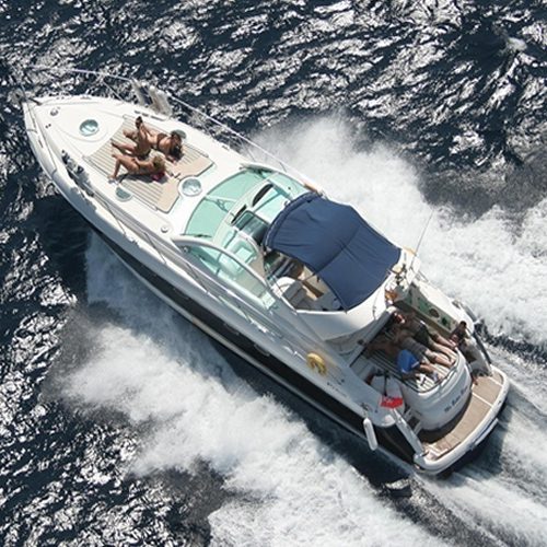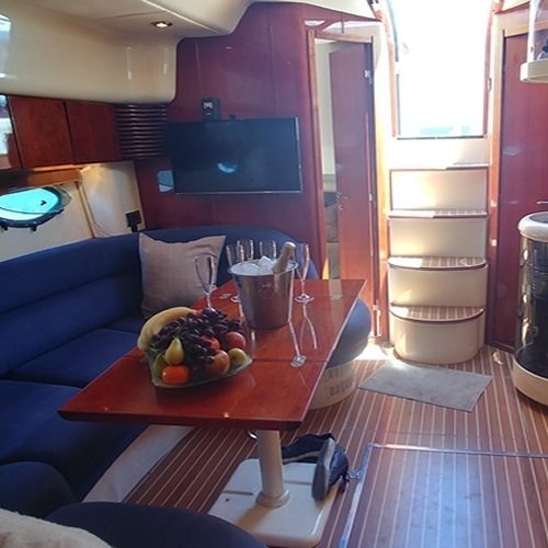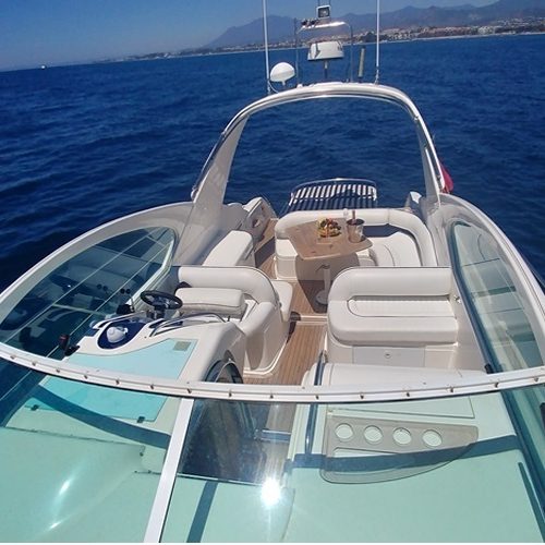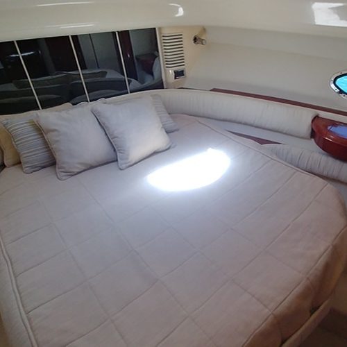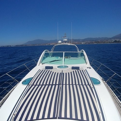 Plataforma de baño, techo solar, solarium delantero y trasero, ducha exterior, 2 WC, cocina, cabina matrimonio y dos cabinas dobles.